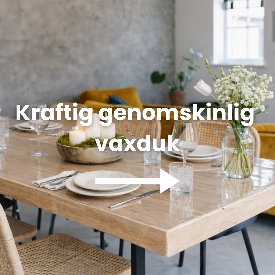 Vår kraftiga, genomskinliga vaxduk är lösningen! Den skyddar ditt bord utan att dölja det – och den ligger snyggt, stadigt och utan veck från start.