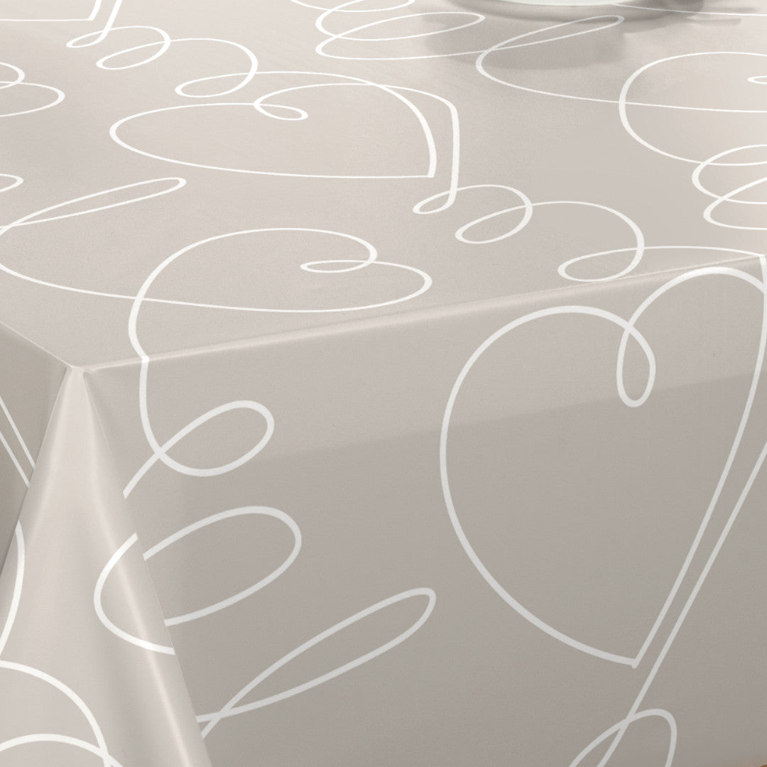 Designen består av mjuka, sammanhängande linjer som slingrar sig i organiska former över duken. De handritade strecken bildar abstrakta figurer som nästan för tankarna till hjärtan eller små rörelser – ett mönster som känns både spontant och lätt grafiskt.