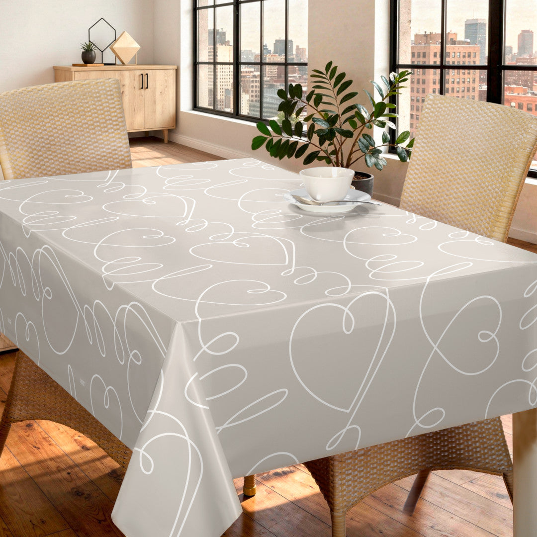 Den varma grå nyansen, inspirerad av Earl Grey-teets dämpade toner, skapar en lugn bas medan de ljusa linjerna ger ett lätt och modernt uttryck. Kombinationen gör duken enkel att passa in i många typer av inredning, från minimalistisk och nordisk till mer personlig och kreativ stil.