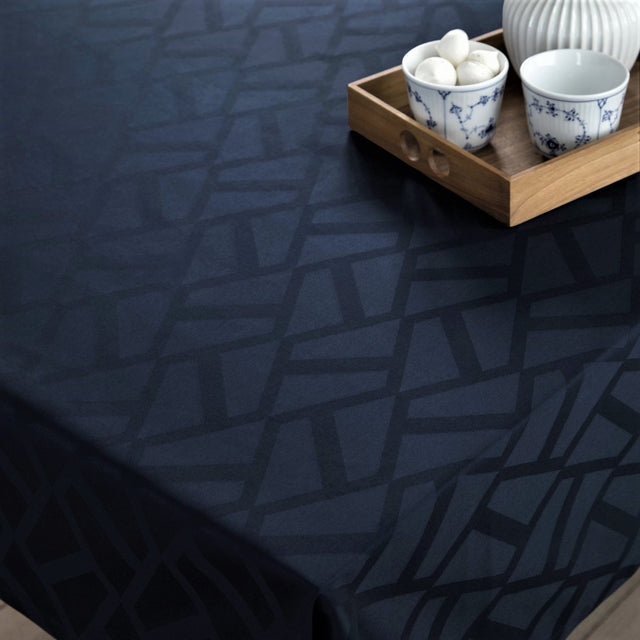 Duken är vävd i 100 % bomull och har en fläckavvisande behandling som gör den både vacker och praktisk. Den djupa kungsblå färgen passar utmärkt med både ljust och mörkt porslin.