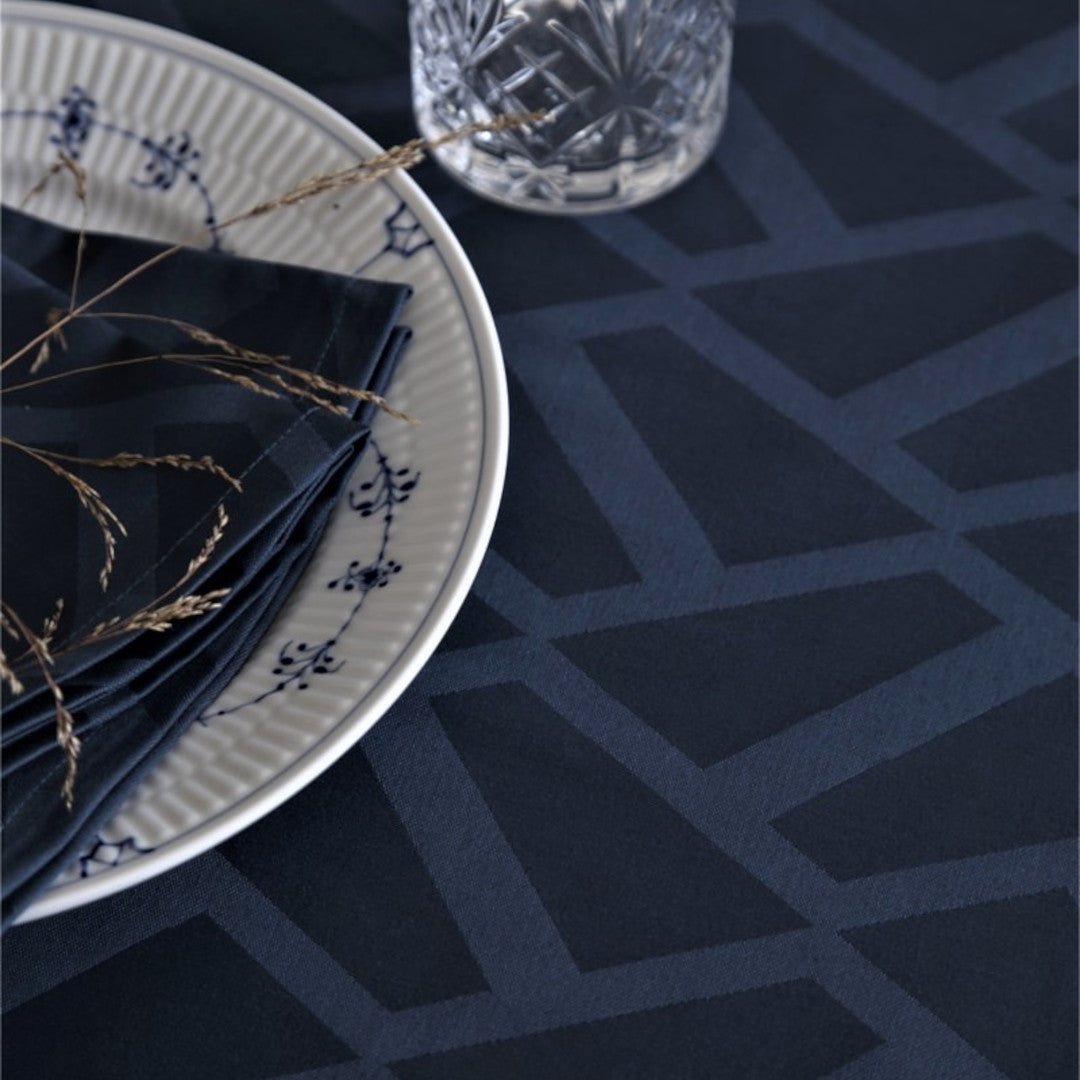Compliments Ice Damastduk i blått kombinerar klassisk vävning med moderna färgtoner. Den djupa, koboltblå nyansen och det is-inspirerade mönstret ger en sofistikerad look som förblir aktuell år efter år.
