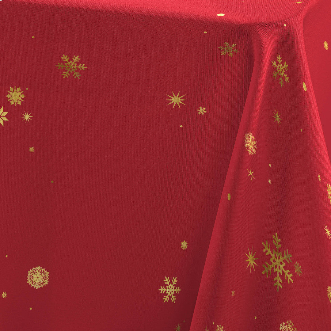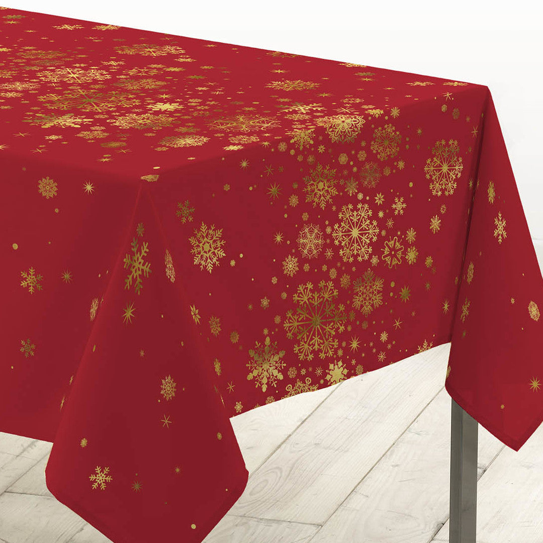 Constellation Röd/Guld är en klassisk julduk med ett varmt och festligt uttryck. Den röda bakgrunden är dekorerad med gyllene snöflingor i olika storlekar som ligger utspridda som ett glittrande mönster över hela duken.