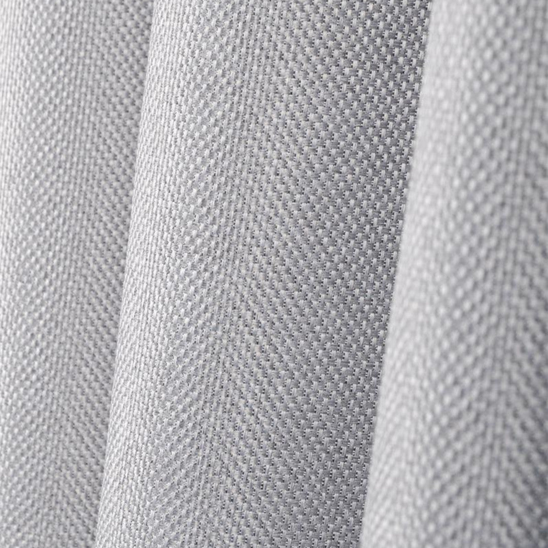 Det eleganta, texturerade vävmönstret ger en sofistikerad detalj till inredningen, medan den ljusa pärlgrå färgen skapar en modern och stilren look. Gardinen fungerar också som en effektiv mörkläggningsgardin som skyddar mot solens strålar och nyfikna blickar.