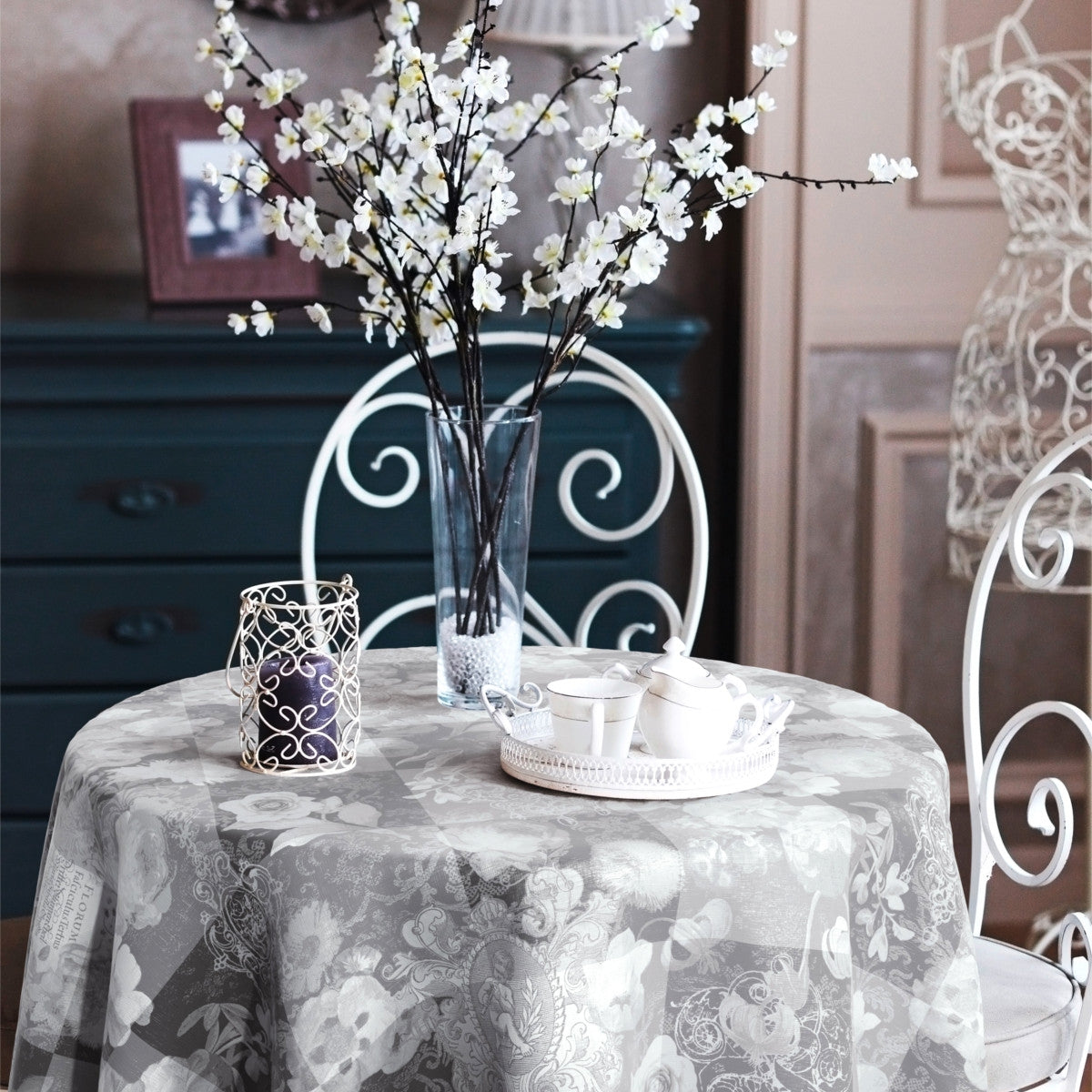 Dalington Grå. vaxduk med rosor i ett elegant präglat mönster