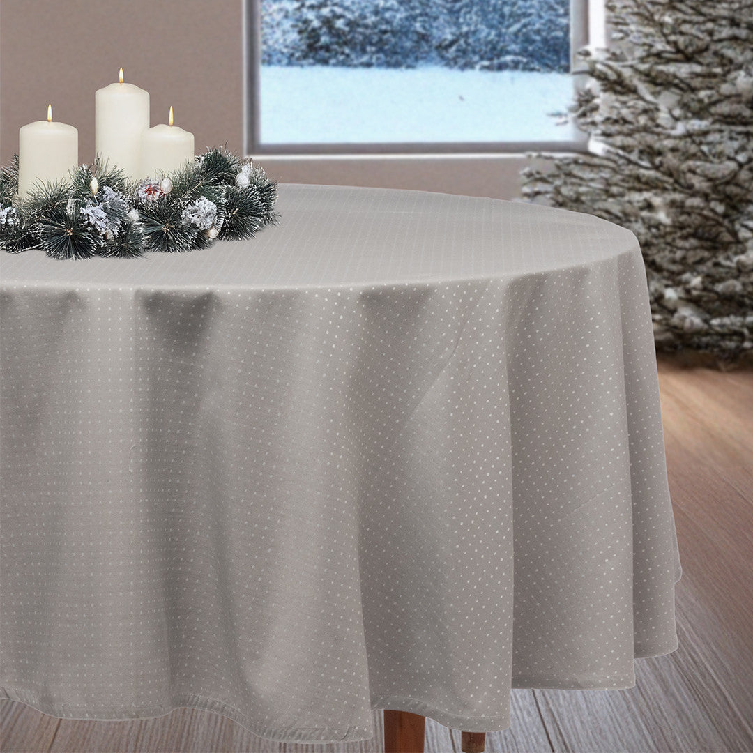 Dotea Grå Blå - Rund damastduk med prickar, Ø 160 cm