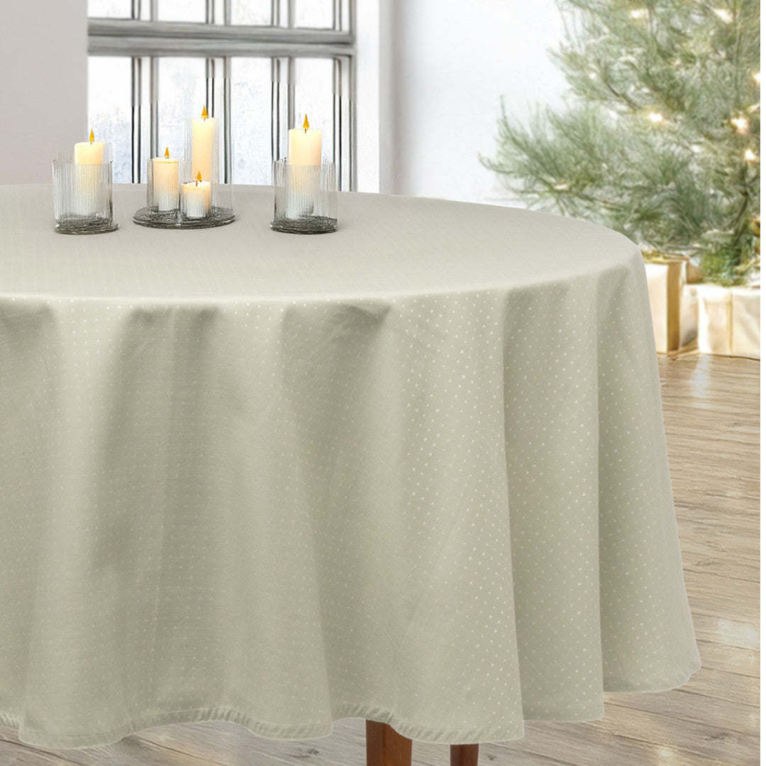 Dotea Sage - Rund damastduk med prickar, Ø 160 cm