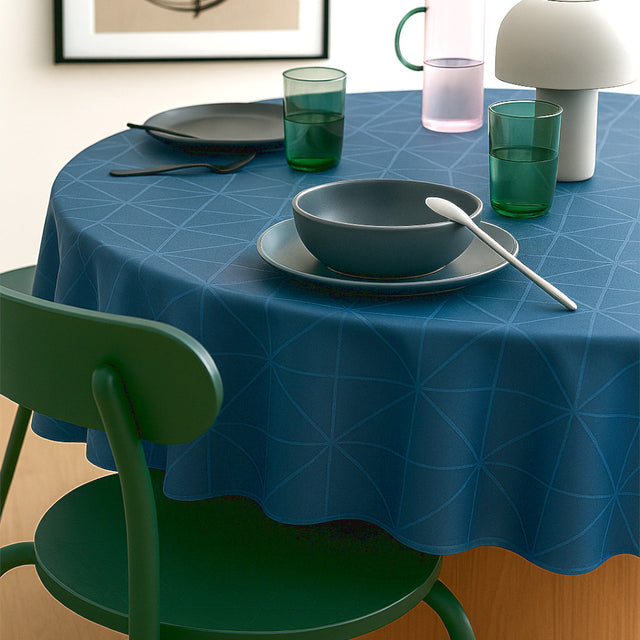 Engholm Tilde Rund Damastduk, blå Ø 200 cm