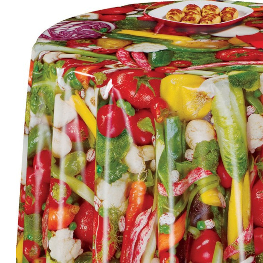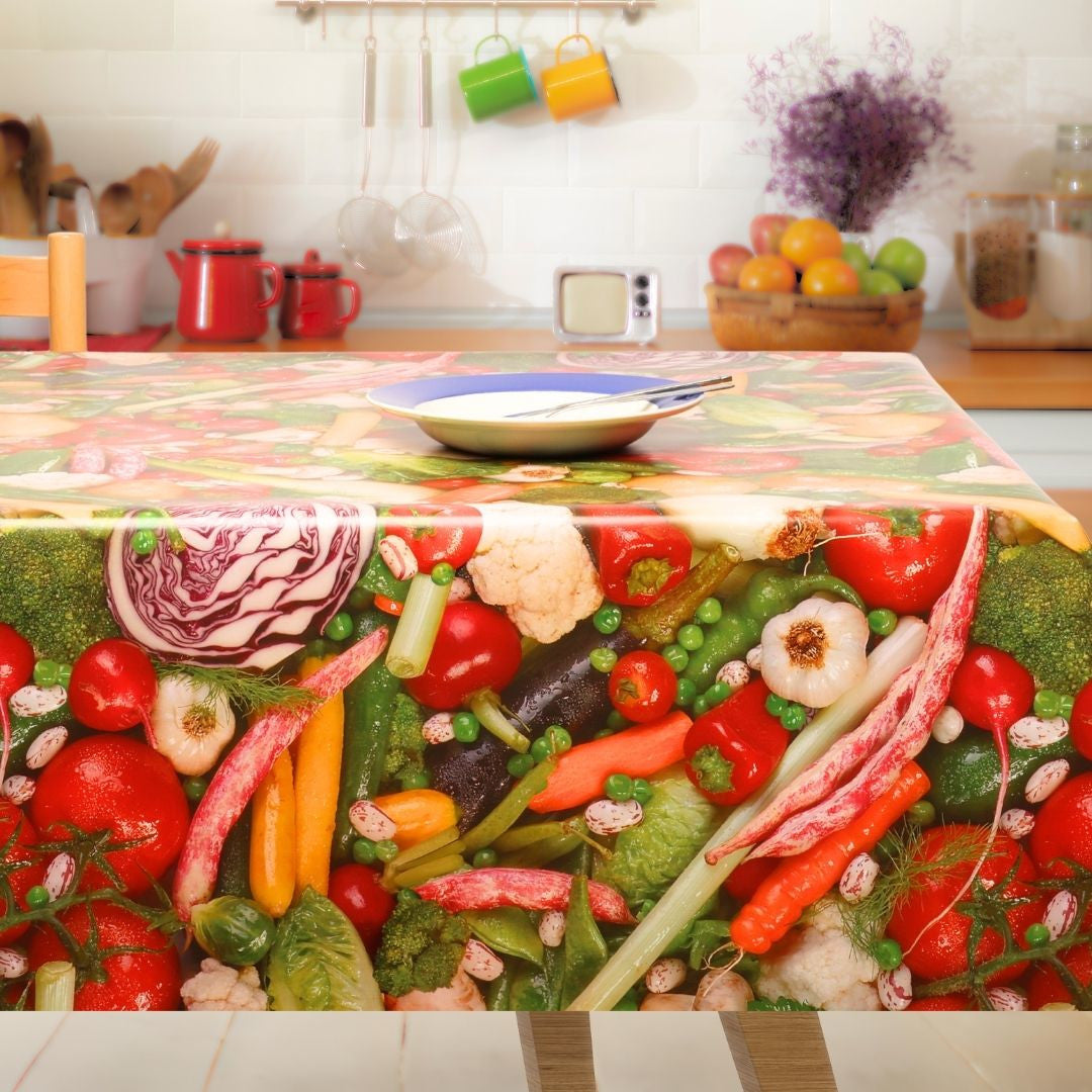 En praktisk och dekorativ vaxduk som kombinerar funktionalitet med härliga färger och matglädje.