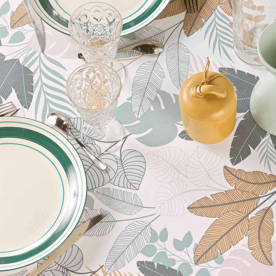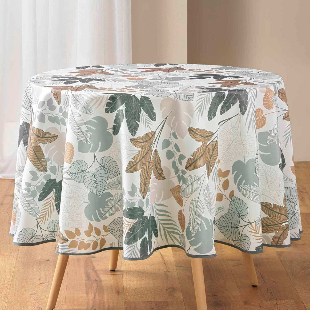 Fidji Ø 180 cm, rund duk med botaniskt mönster i dämpade toner