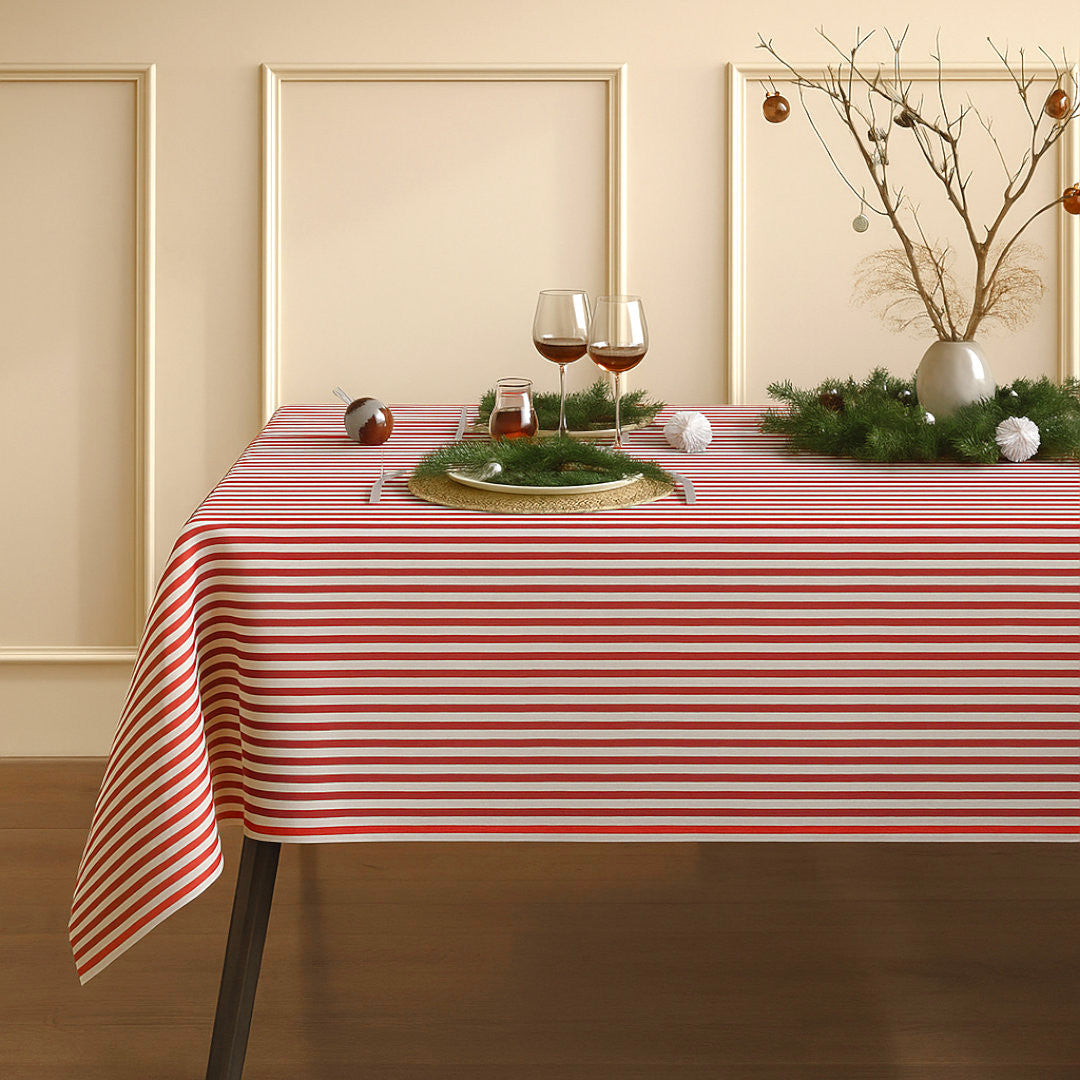 Julbordsduk Rödrandig - textilvaxduk i linne look