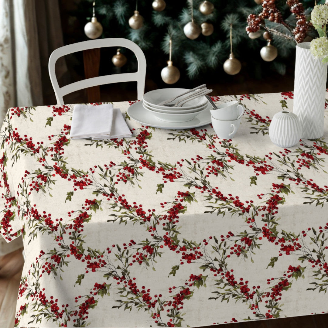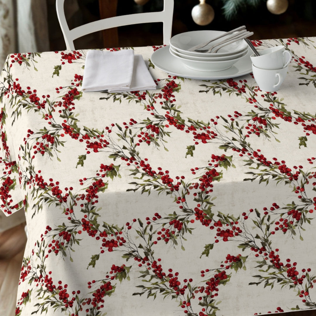 Nordfavn Bessie – Jultextilduk med röda bär och gröna grenar