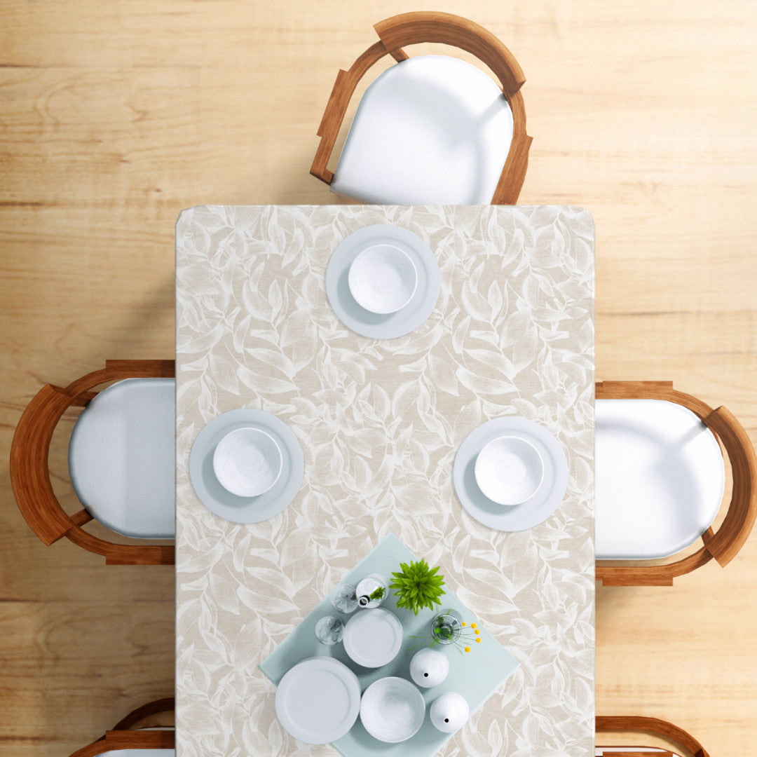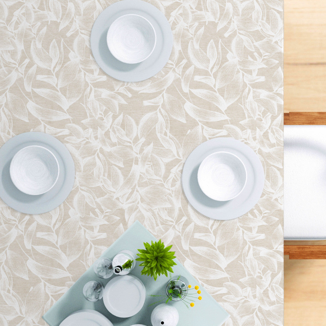 Det stiliserade bladmönstret ger en subtil effekt, vilket gör den till ett perfekt val när du vill ha en duk som tillför lätthet och karaktär utan att dominera. En modern klassiker för både vardag och festliga tillfällen.