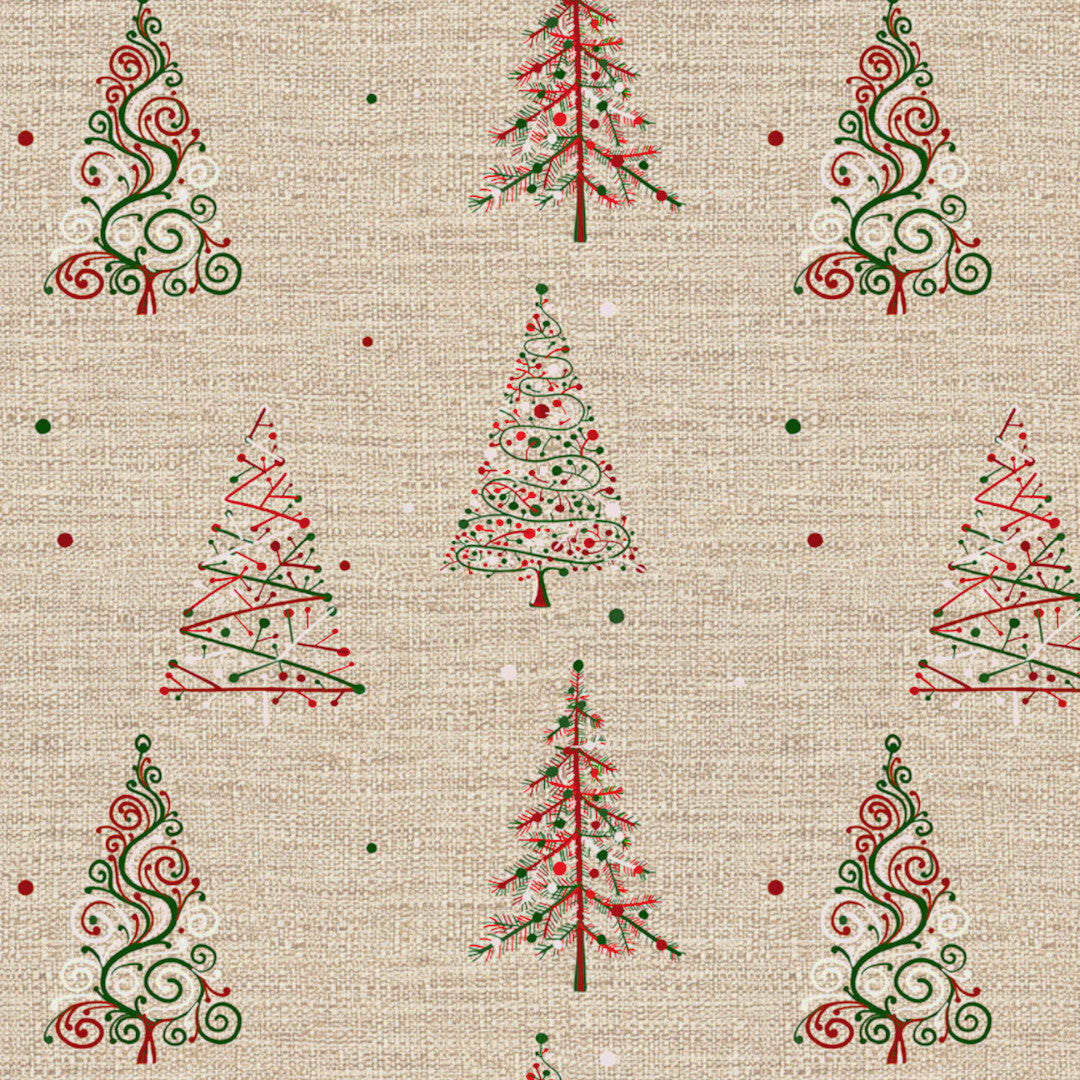 Nordfavn Crisp är en jultextilduk med en lätt och naturlig känsla. Den ljusa vävda basen ger duken karaktär som en klassisk tygduk, medan de stiliserade julgranarna i röda och gröna toner tillför en enkel och modern touch. Designen är festlig men ändå dämpad – perfekt för den nordiska julen.