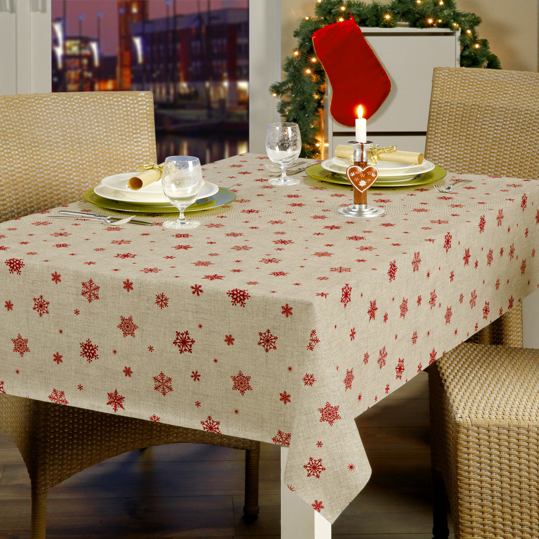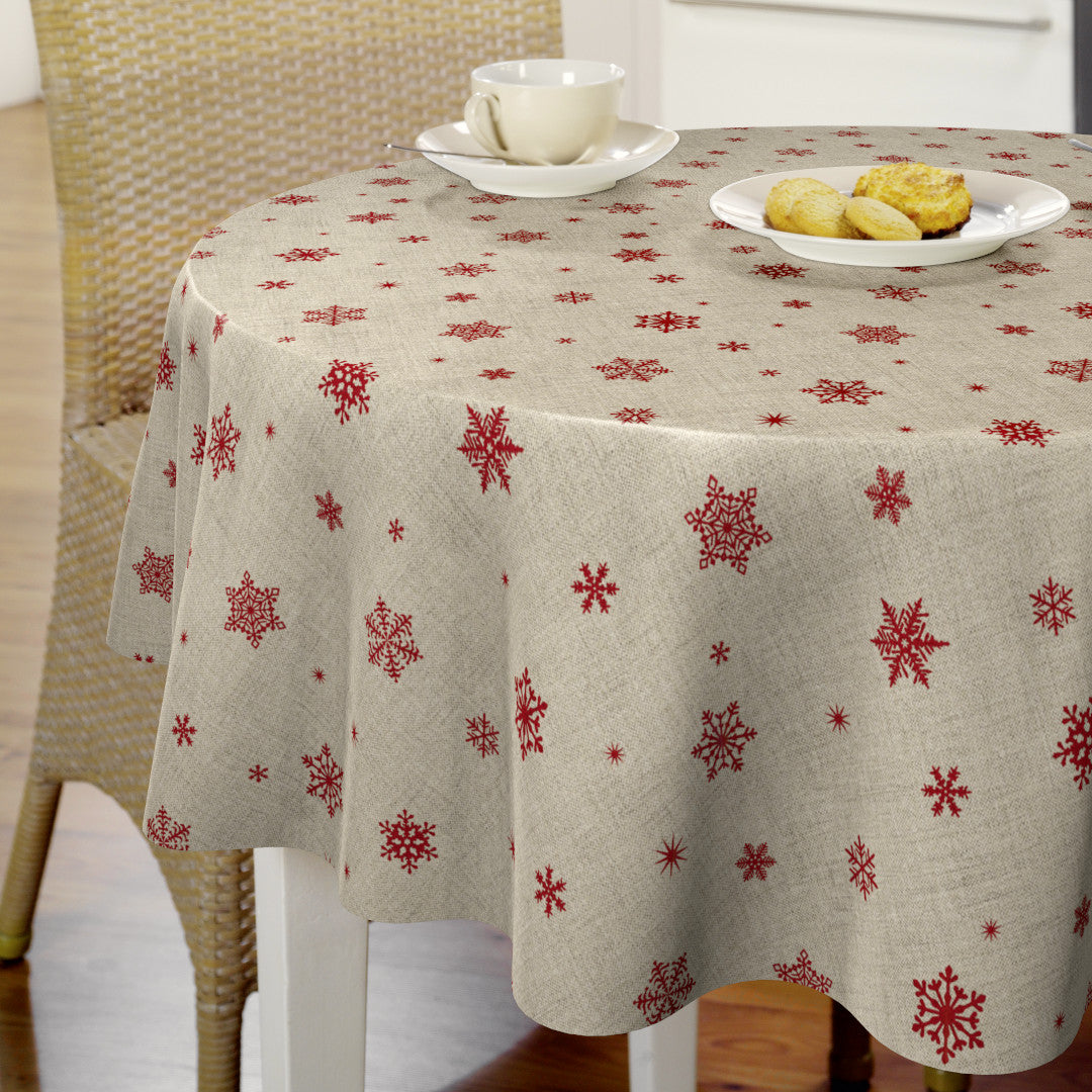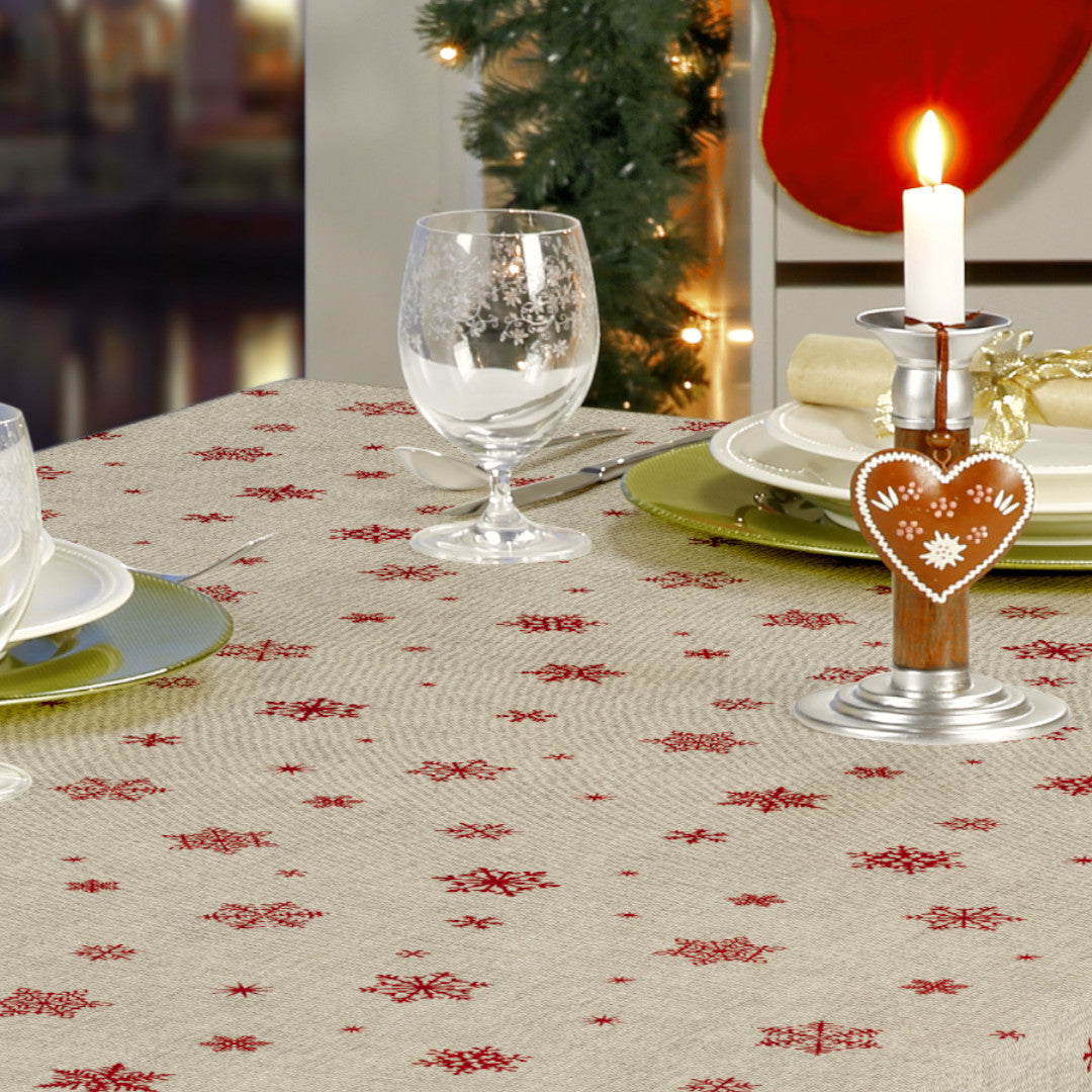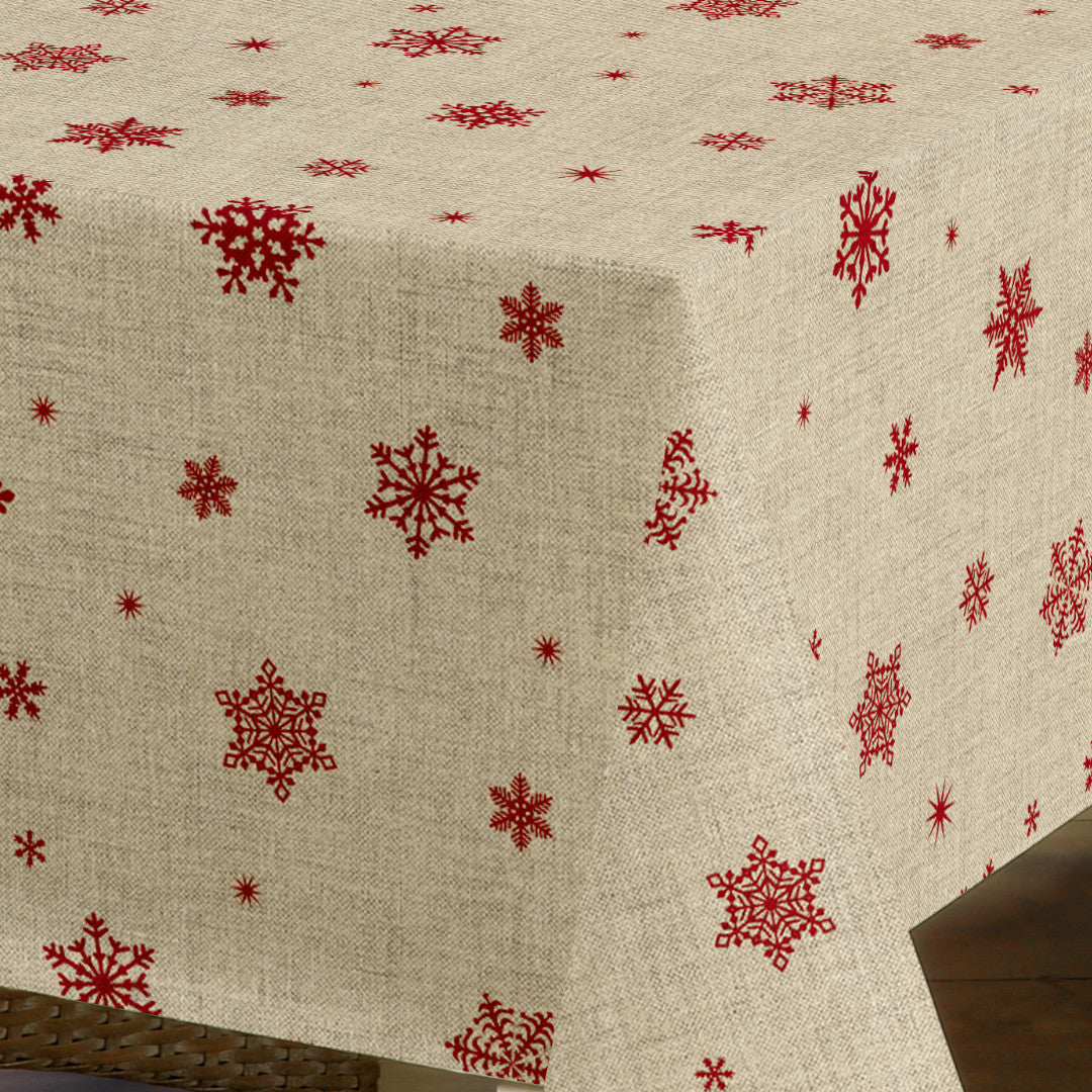 Nordfavn Snowflakes är en julvaxduk som förenar enkelhet och julstämning på ett lugnt, nordiskt sätt. Den ljusa linnelook-bakgrunden ger en varm känsla, medan de röda snöflingorna och iskristallerna skapar en fin kontrast och ett klassiskt vintermotiv. Mönstret är detaljerat men återhållsamt, vilket ger en julkänsla utan att ta över.