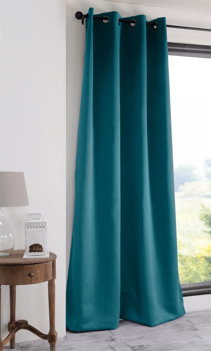 Elegant mörkläggningsgardin i en vacker petroleumblå nyans som effektivt dämpar ljuset (ca. 80–90%) och skapar en behaglig atmosfär i rummet. Det mjuka, släta tyget i 100% polyester ger ett vackert fall och en modern, enfärgad look som passar både klassiska och moderna miljöer.