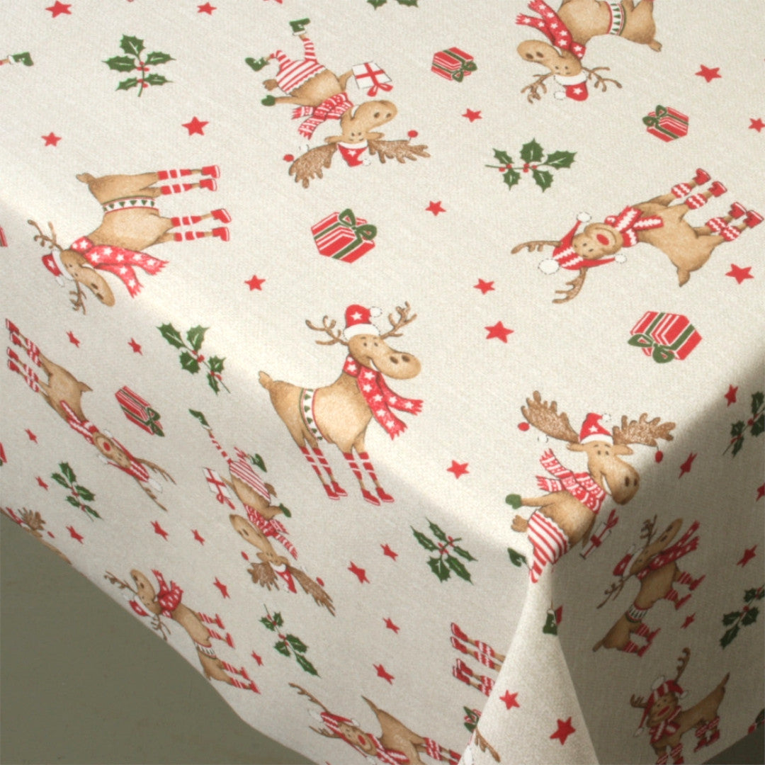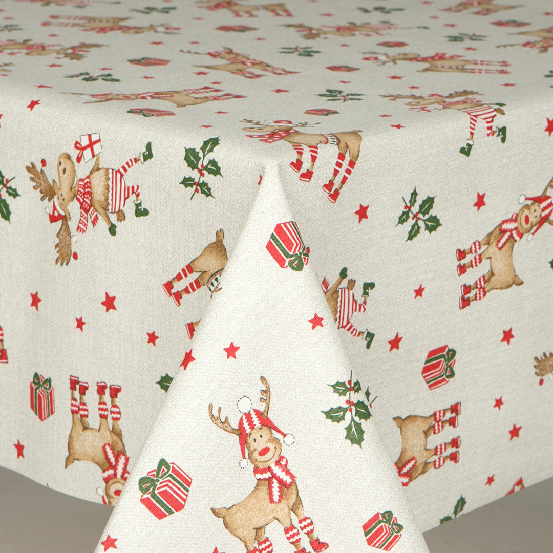 Rudolf Julefest - Julduk i linnelook, textilvaxduk med akrylbeläggning