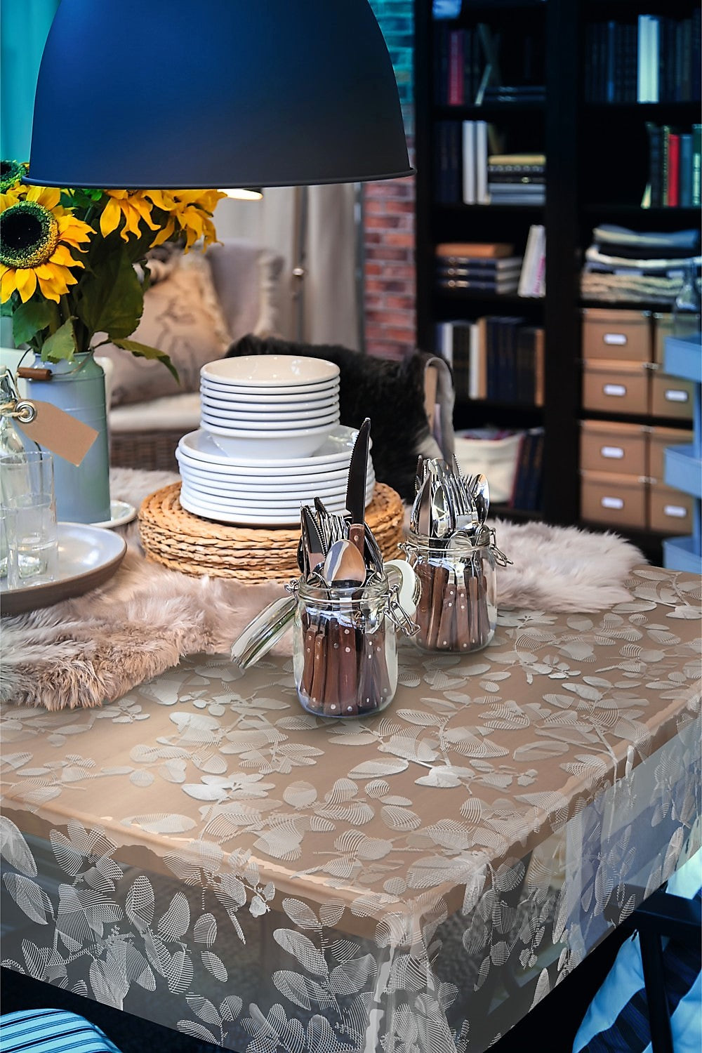 Om du planerar att placera tunga föremål, såsom en blomvas eller ett fat med ljus, på bordet under en längre tid, är det alltid en bra idé att använda ett underlägg. Detta förhindrar märken och skador på duken.