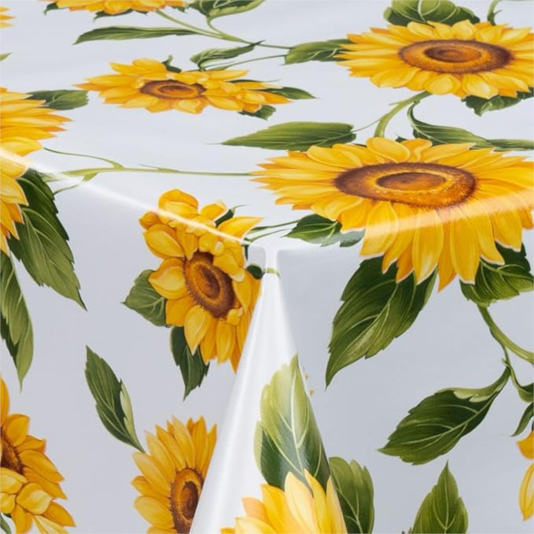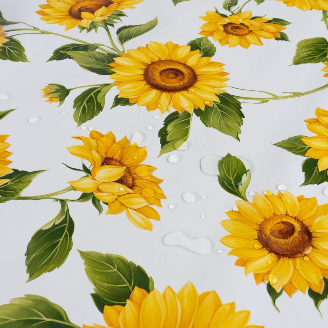 Solrosor - Vaxduk i gula och orange färger på vit botten, 140 cm
