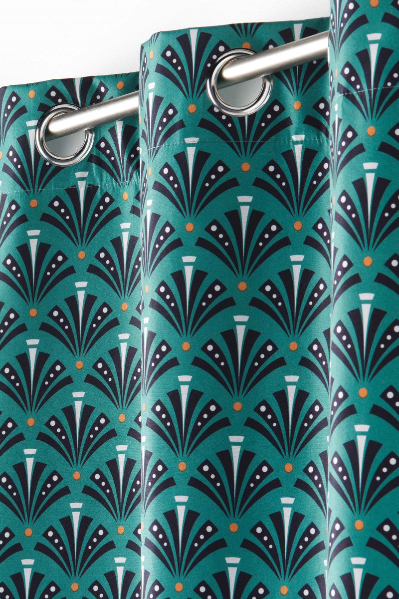 Surya Blue är en modern mörkläggningsgardin med ett elegant grafiskt mönster i art déco-stil. De mörkblå och turkosgröna nyanserna kombinerat med fina detaljer i vitt och guld ger gardinen en unik och stilren look som passar perfekt i både klassiska och moderna hem.
