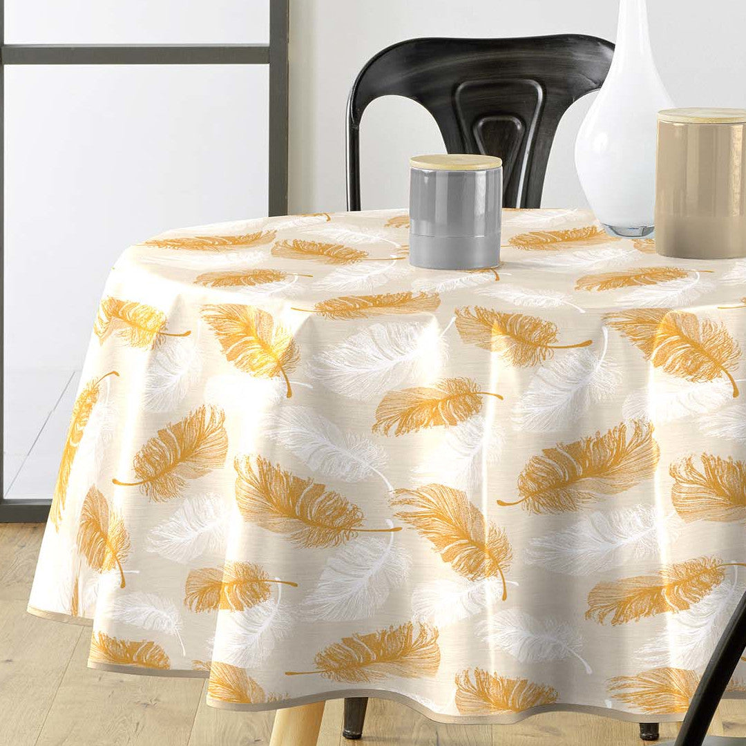 Ge din dukning en känsla av lätthet och elegans med Glitter Sarina – en rund vaxduk dekorerad med mjuka fjädrar i varma gyllene och vita toner. Duken har en vacker, diskret glittereffekt som fångar ljuset och ger bordet en livfull och raffinerad look.
