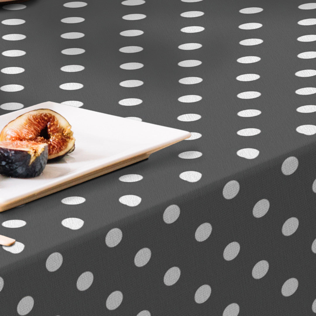 Top Dots Grey – Mörkgrå vaxduk med vita prickar