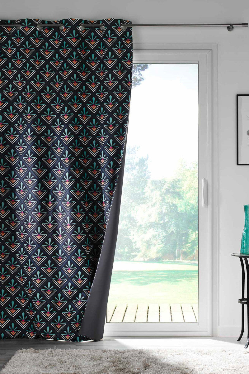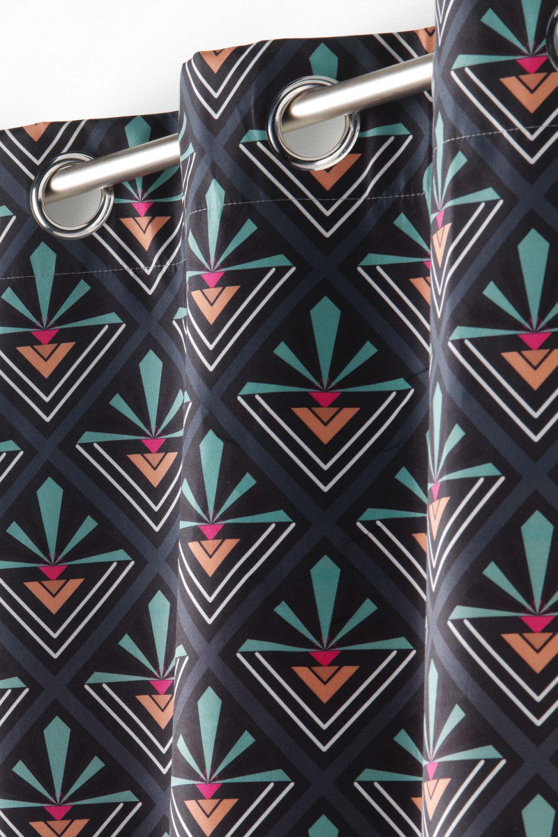 Yuko Blå är en modern mörkläggningsgardin med ett geometriskt mönster i nyanser av blått, orange, rosa och vitt på en mörk bakgrund. Den stilrena designen skapar ett spännande visuellt uttryck som passar perfekt i sovrum, vardagsrum och kontor.